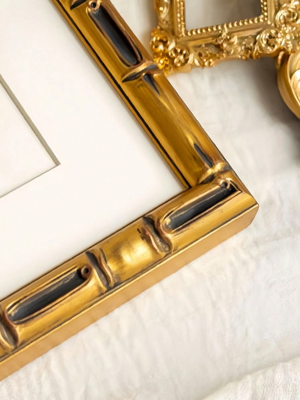 Elegante marco dorado con detalles ornamentales. Tamaño A4, perfecto para nuestros poemas en pergamino.